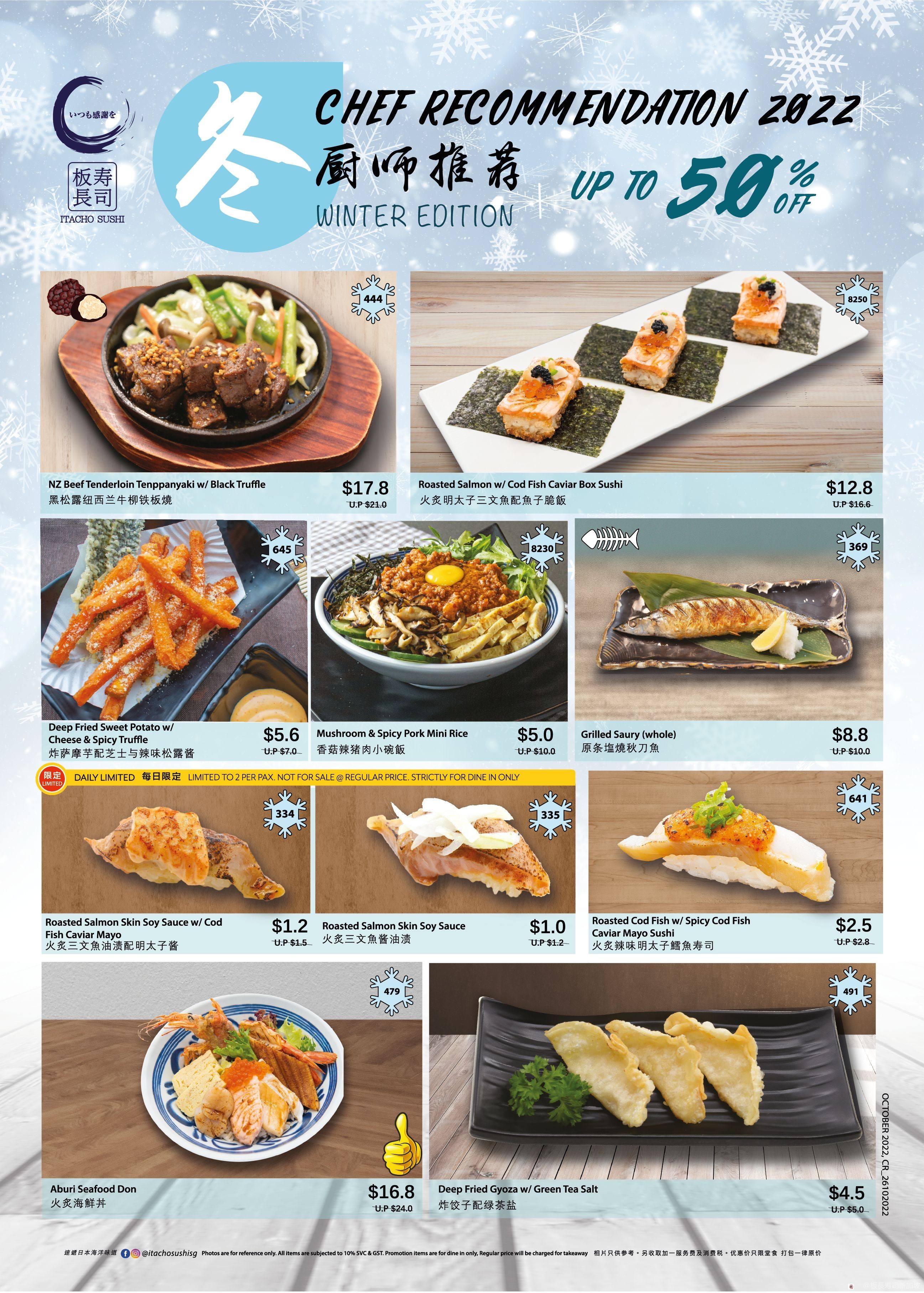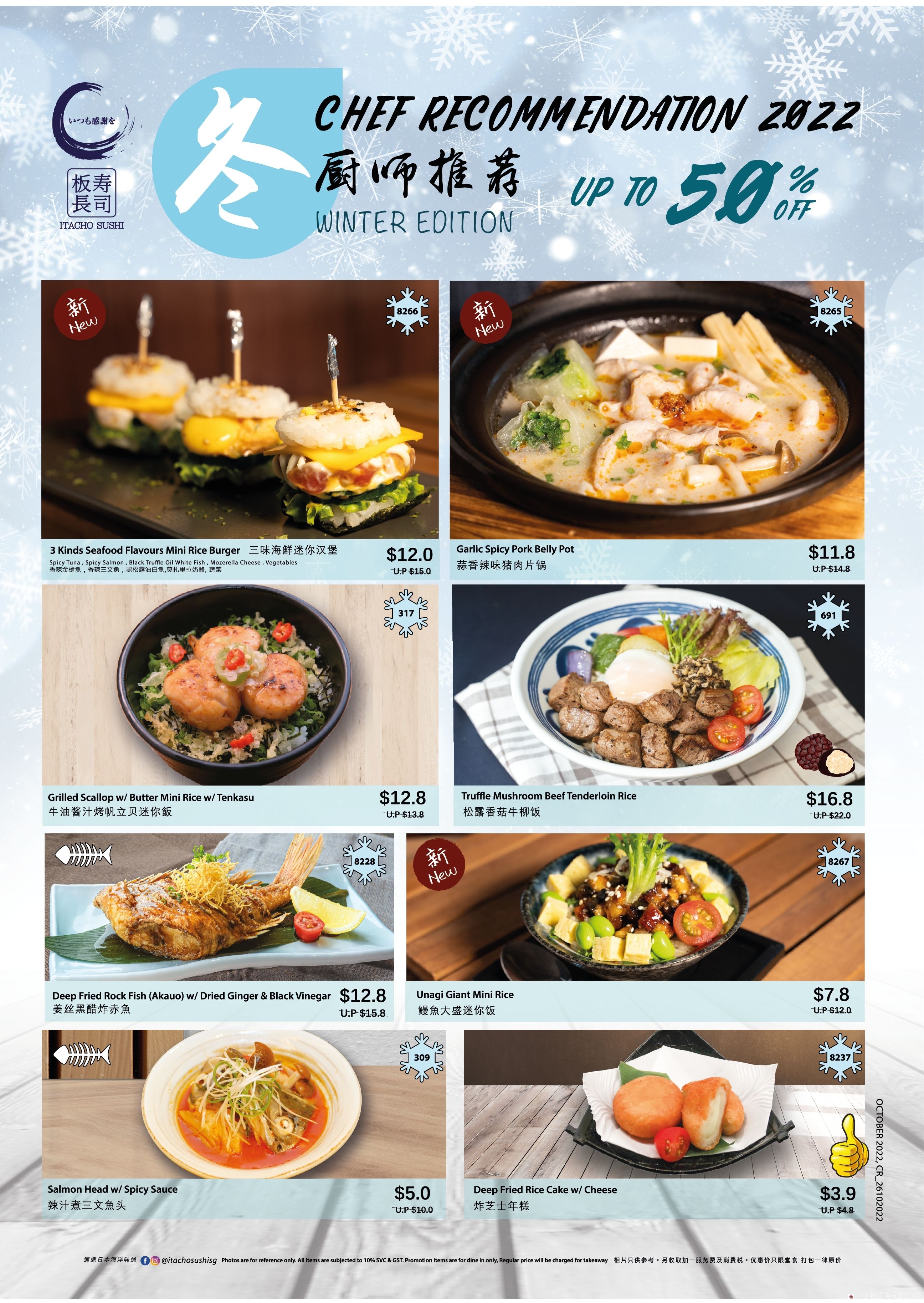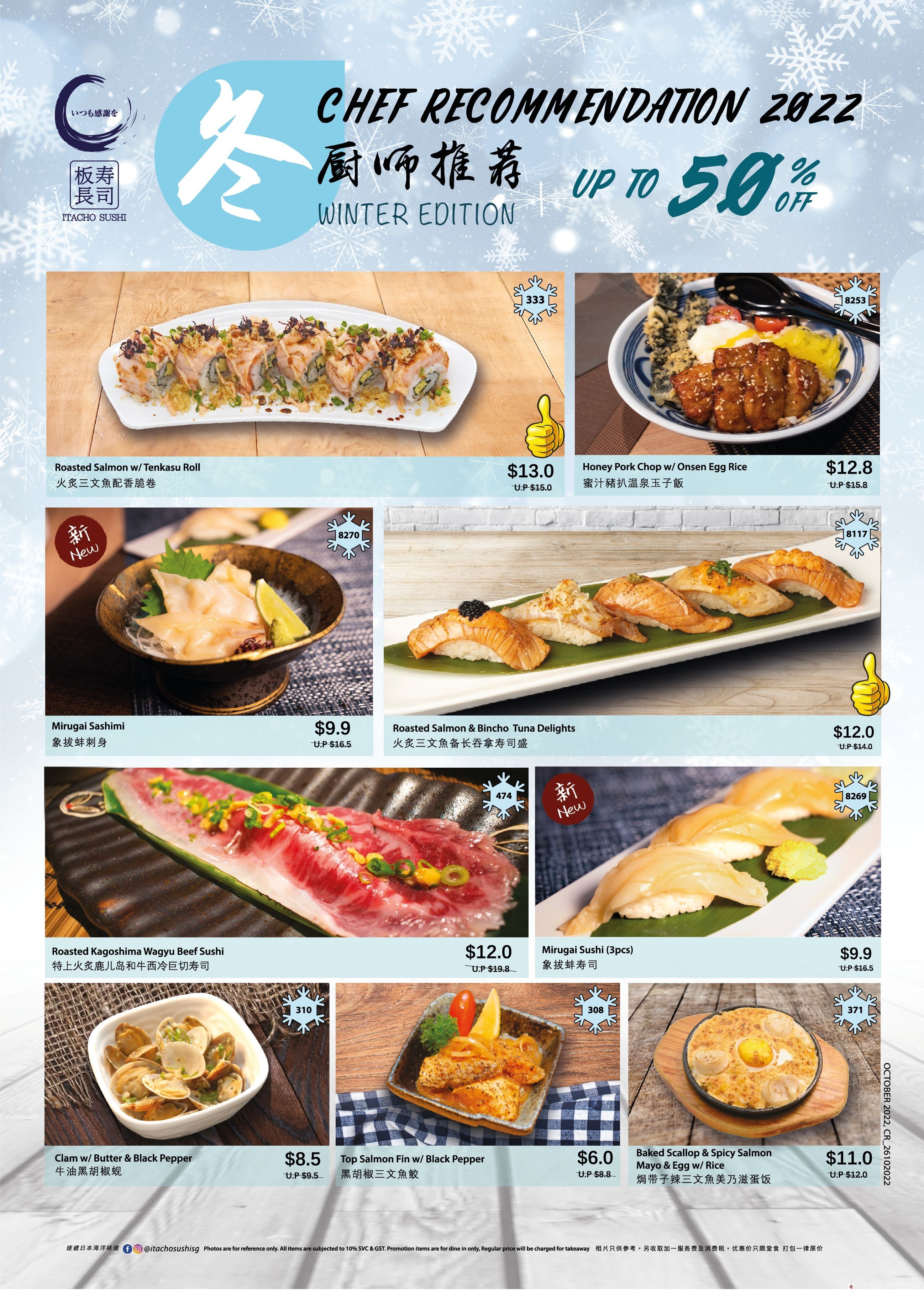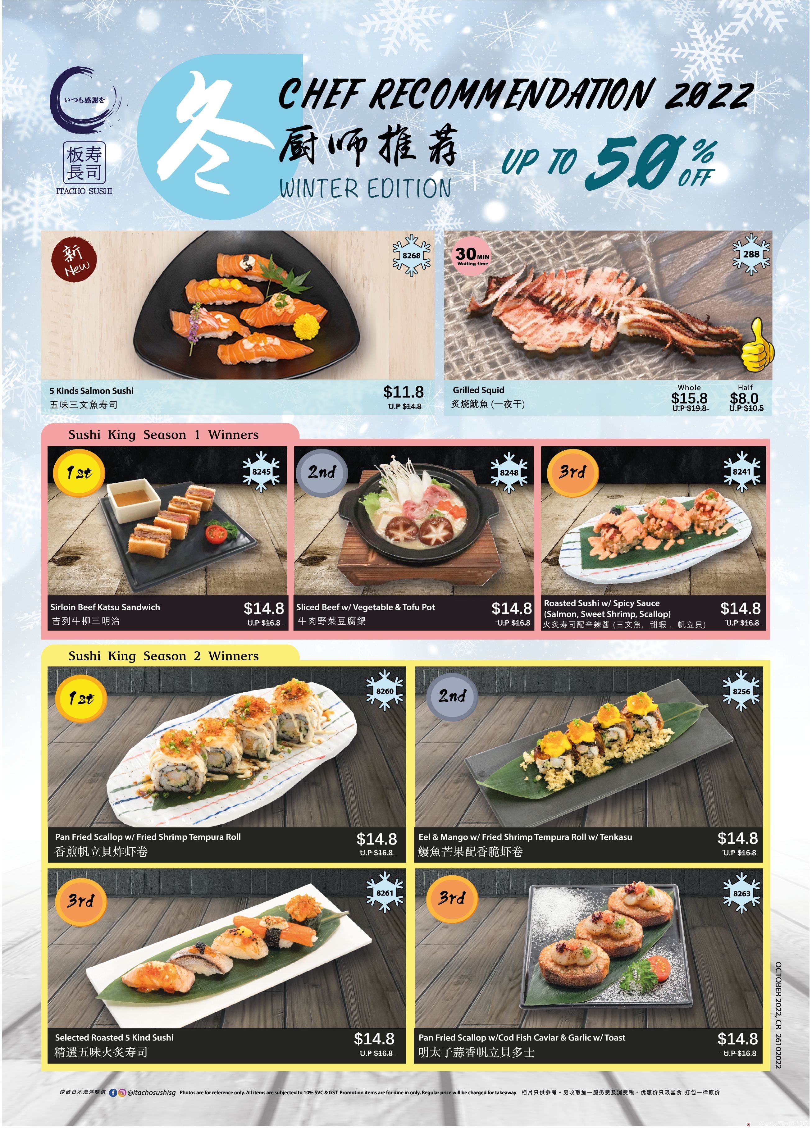 板长寿司希望即使在四季如夏的新加坡也能给你带来日本直送的正宗味道,和大家一起感受冬日的氛围!2022年冬季厨師推薦将在11月2日在全岛的板长寿司分店开始售