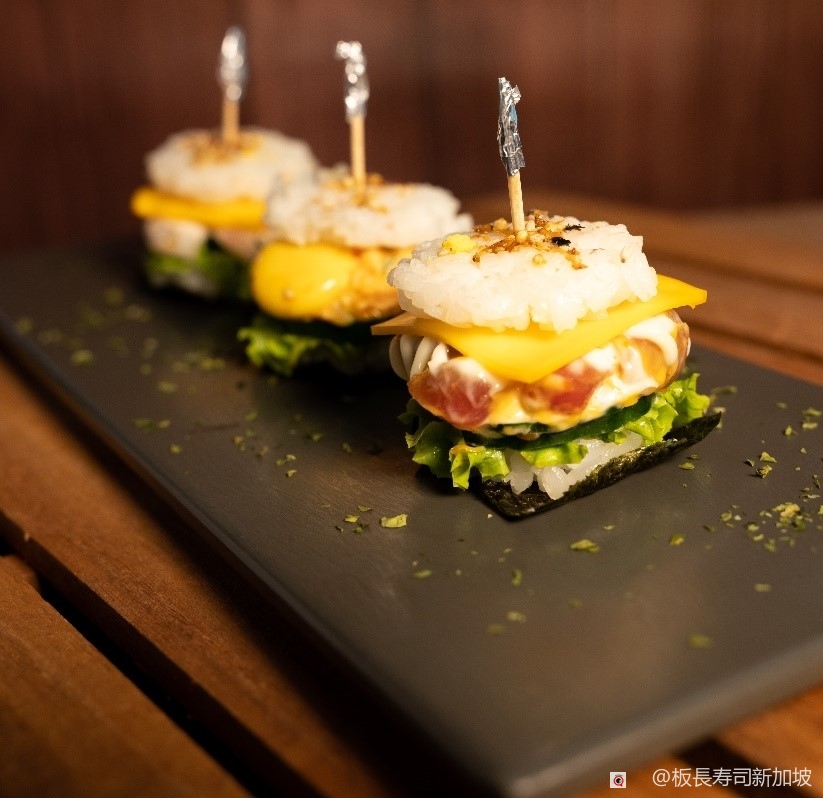 一口一个迷你小汉堡! 相信是小朋友无法拒绝的可爱餐品!而它的材料也运用了板长最为出名的吞拿鱼,三文鱼以及白鱼!每一个汉堡都加入了蔬菜和芝士,使得它更能俘获小朋友的心!